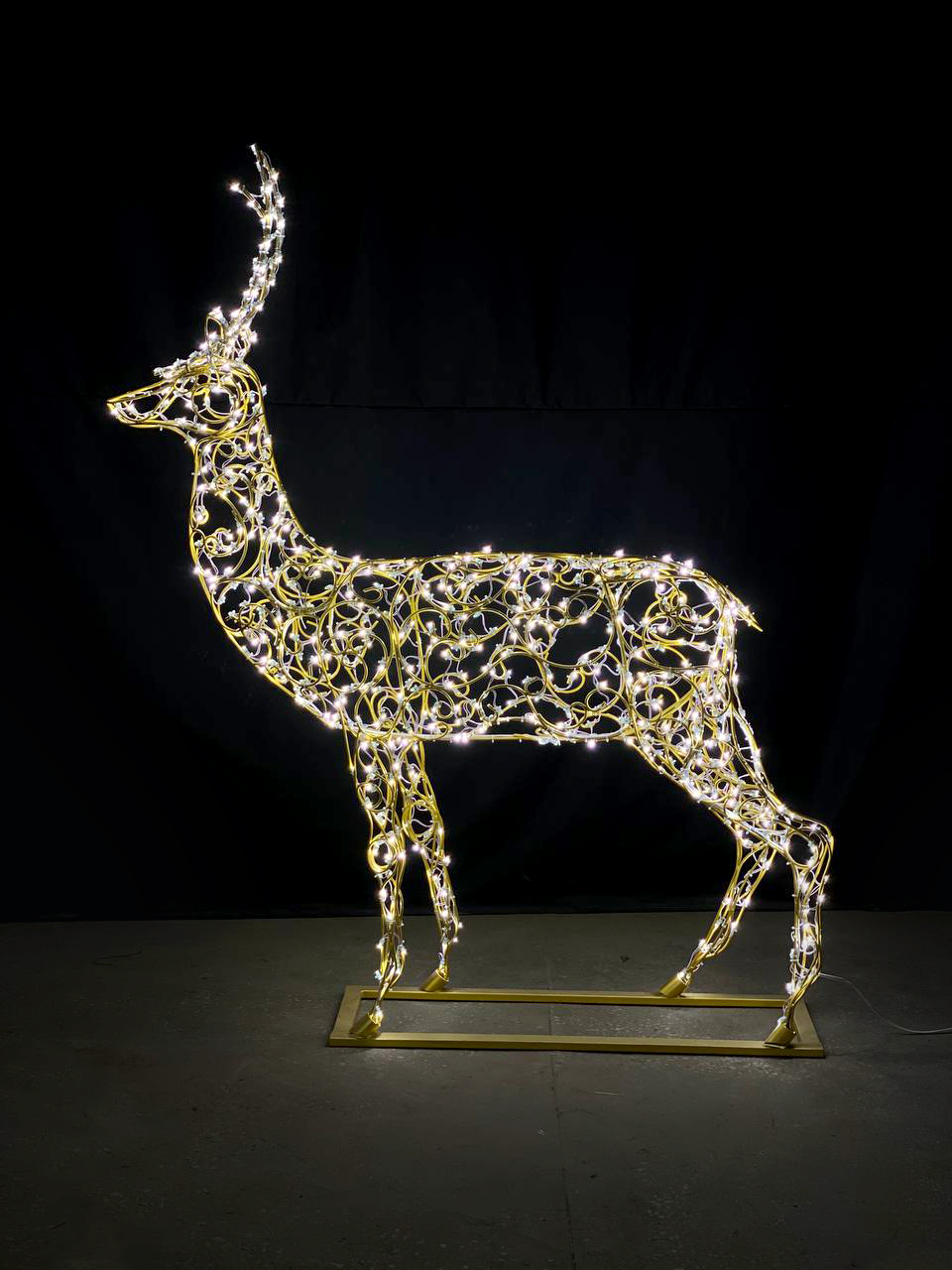 Световая фигура Олень "Рождественский" изготовлен из проволоки ГОСТ 3282-74 термообработанная диаметром 6-8 мм. Блок питания и металлический бокс входит в комплект поставки.