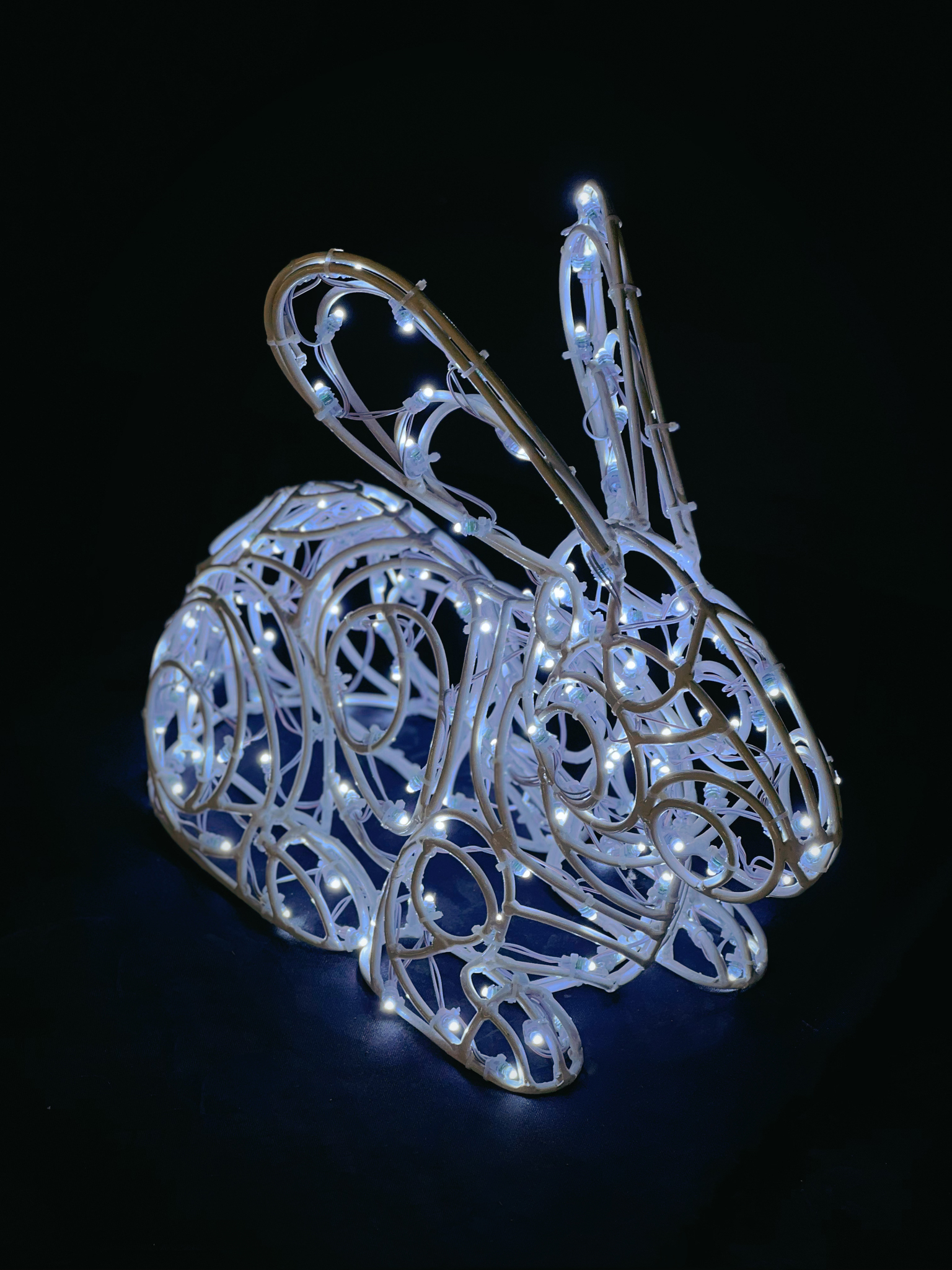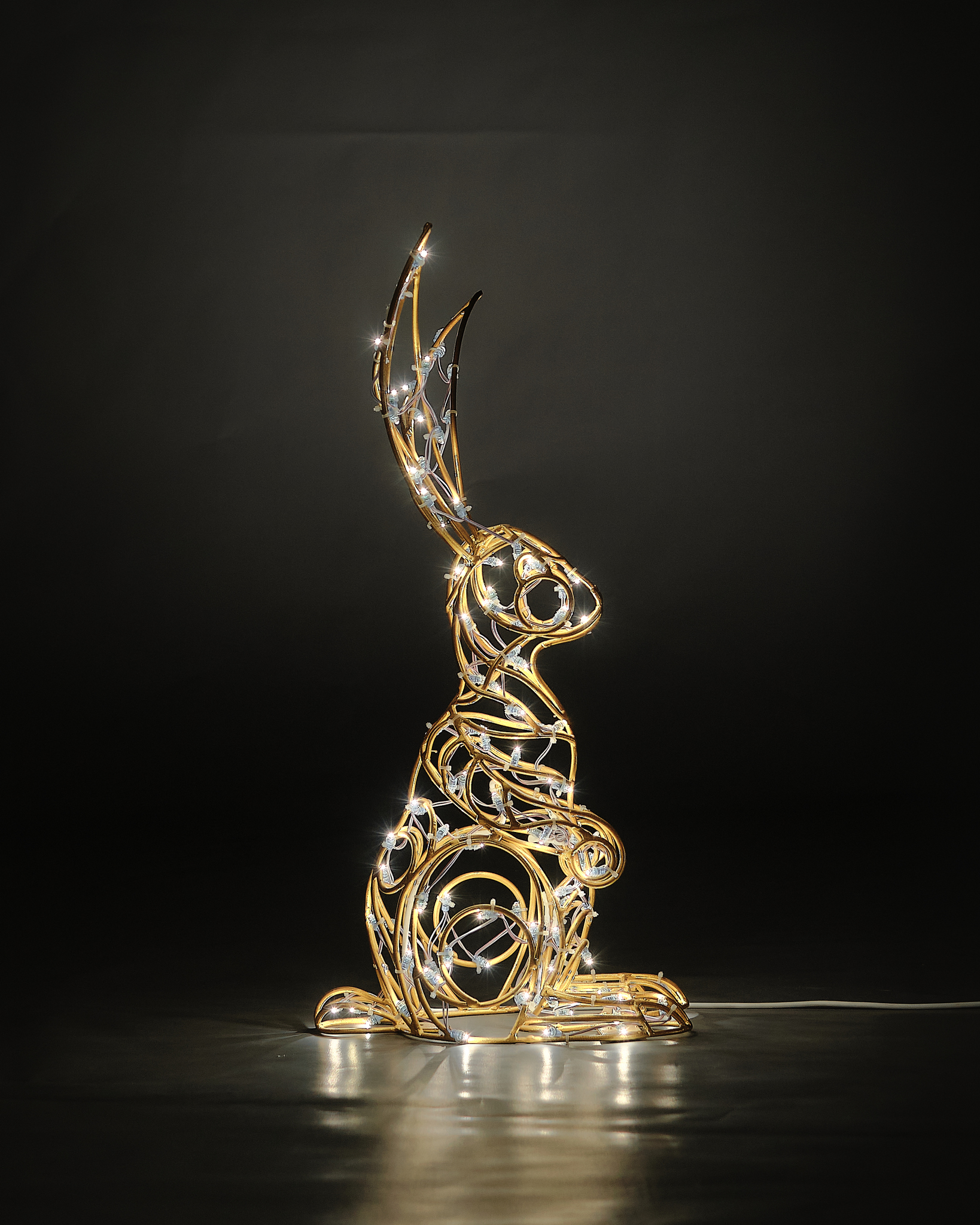 Световая фигура Заяц изготовлена из проволоки ГОСТ 3282-74 термообработанная диаметром 6-8 мм. Блок питания и металлический бокс входит в комплект поставки.